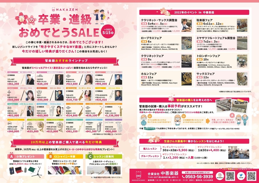 春の管楽器セール2022のお知らせ