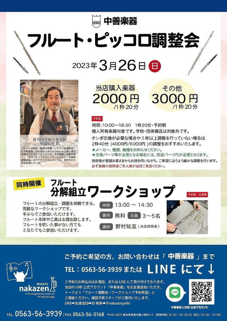 フルート・ピッコロ調整会のお知らせ 2023.3.26