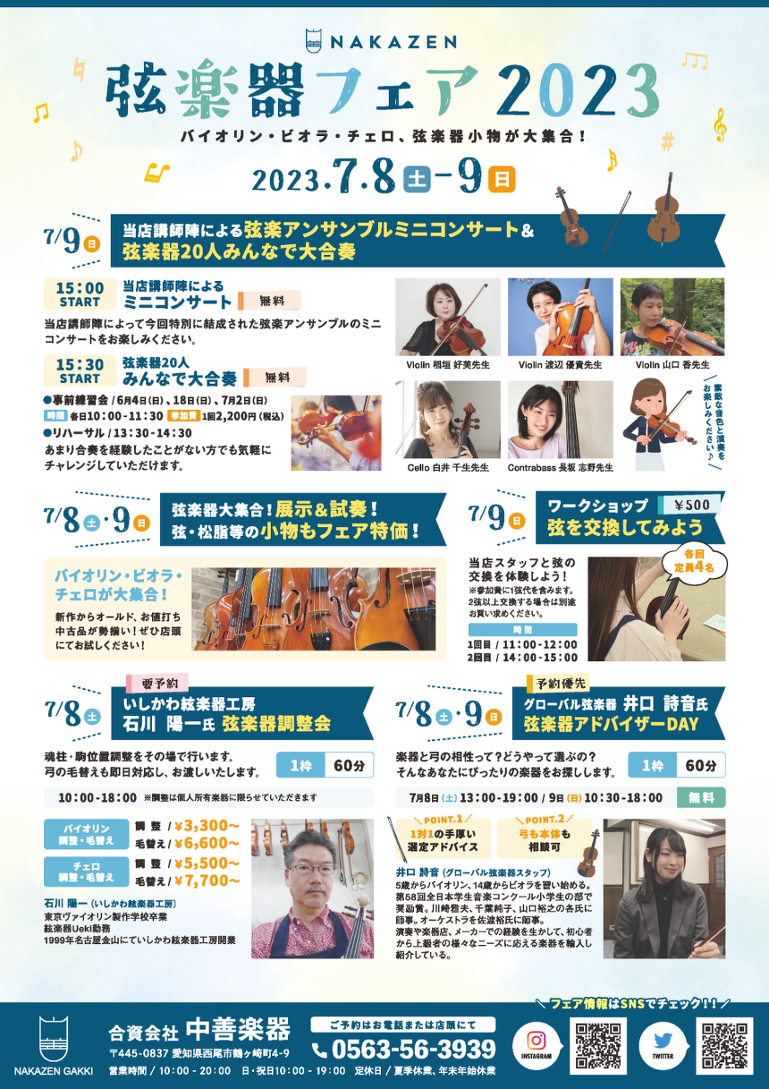 弦楽器フェア2023のお知らせ 2023.7.8-9