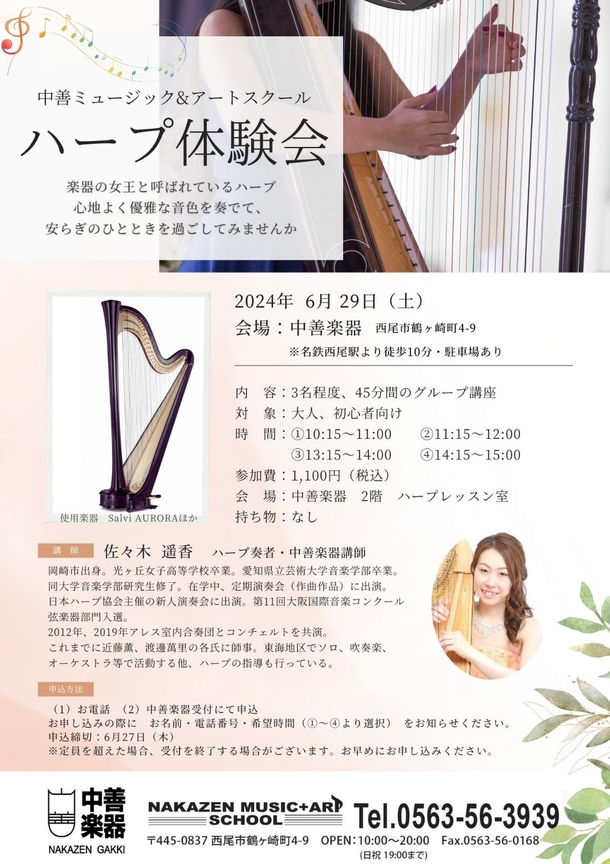 ハープ体験会のお知らせ(6/29)