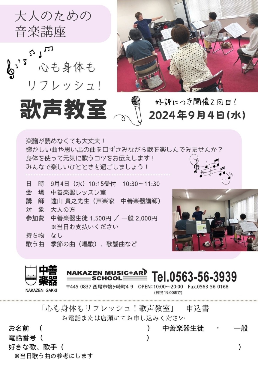 大人のための音楽講座「心も身体もリフレッシュ!歌声教室」参加者募集(9/4)