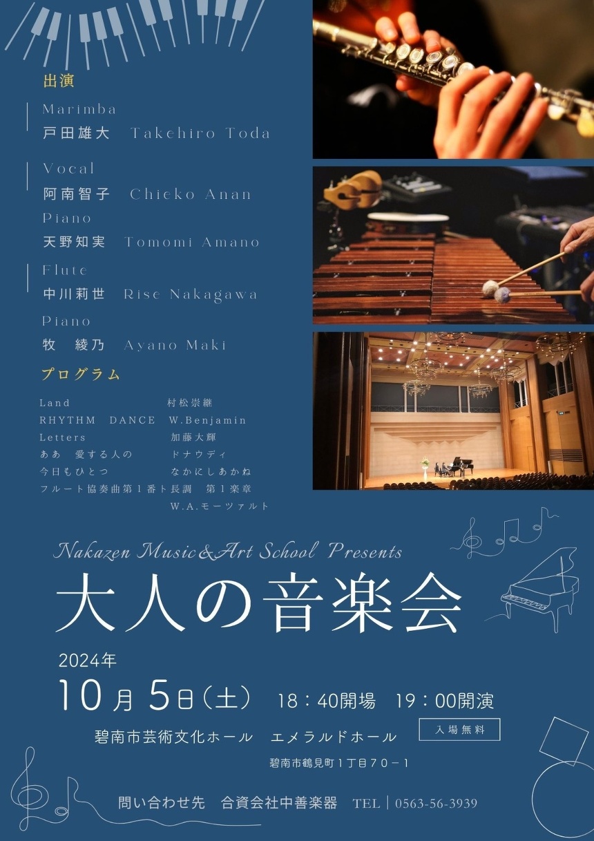 国内有数の響きの良さを有する碧南市芸術文化ホールにて、大人の方を対象とした、コンサートスタイルで出演いただく場を企画しました。