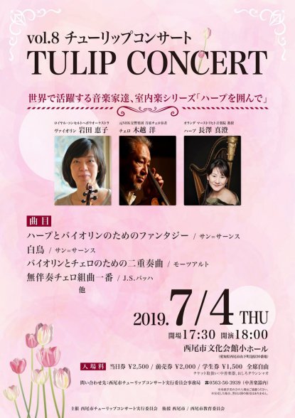 チューリップコンサート2019 世界で活躍する音楽家達、室内楽シリーズ「ハープを囲んで」