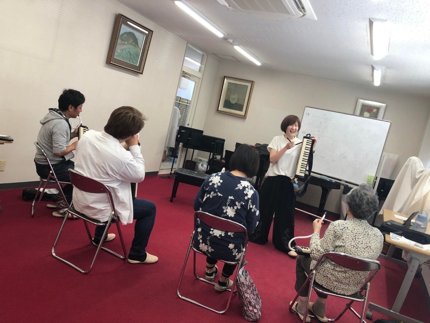 教室では、五線譜を使用しないテキストや、ビギナーの方にもやさしい楽譜などを用い、「ケンハモ認定講師」による丁寧な指導で進めていきます。